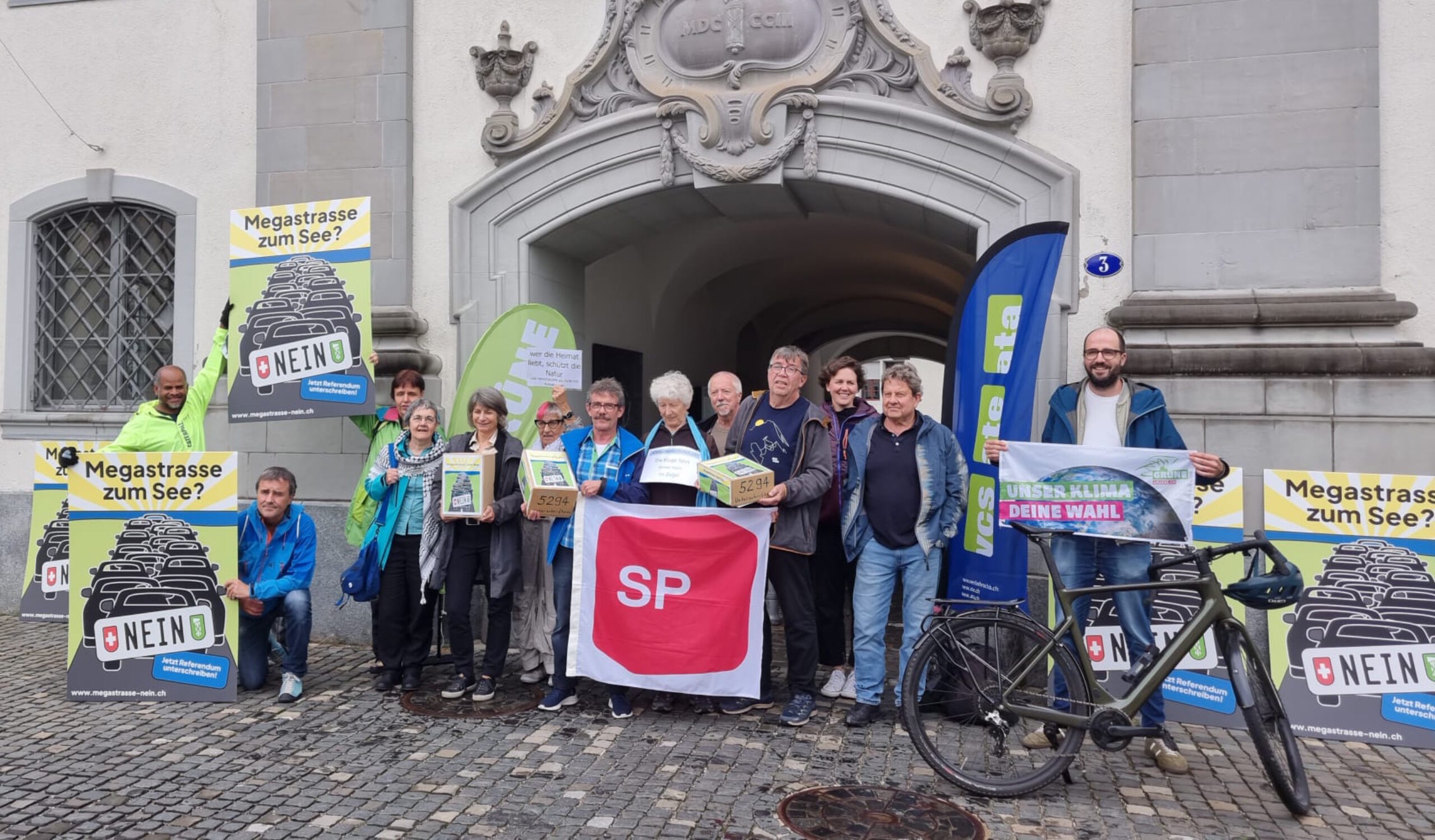 Eine breite Allianz aus Verbänden, SP und GRÜNEN hat heute das Referendum gegen die Megastrasse zum See bei Rorschach mit 4753 gültigen Unterschriften eingereicht. Da die Referendumsfrist in die Ferienzeit fiel, stellte die Unterschriftensammlung eine grosse Herausforderung dar. Die GRÜNEN haben wesentlich zum Zustandekommen beigetragen und sind erfreut, dass sich der ausserordentliche Einsatz gelohnt hat.